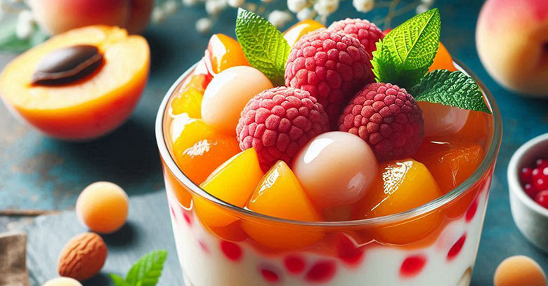 玉荷包ライチを使った簡単で美味しいレシピが、杏仁豆腐です。まろやかな杏仁豆腐に、ジューシーな玉荷包ライチの果肉をトッピングするだけで、見た目も味も華やかなデザートに仕上がります。